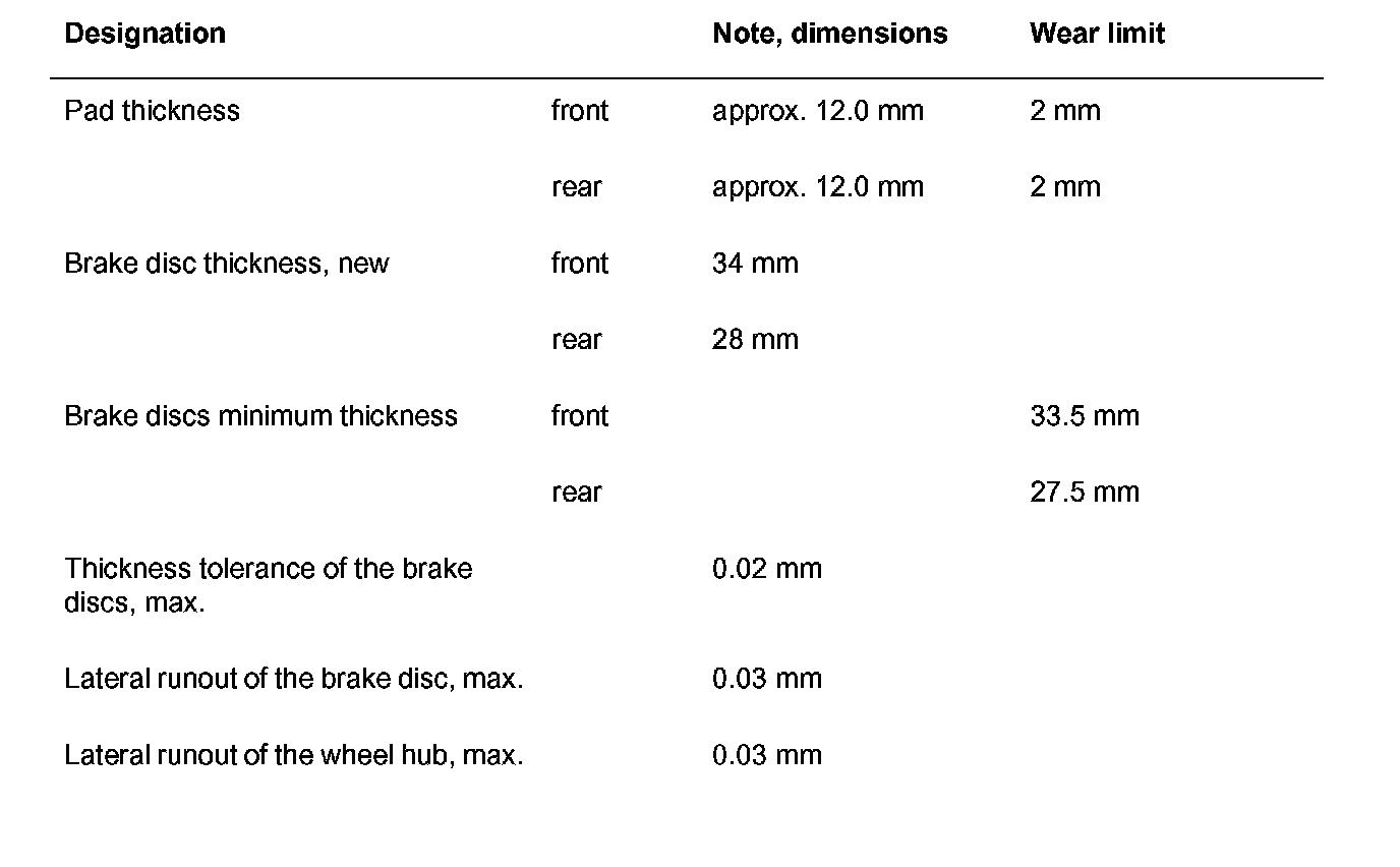 Technical Data/Brake Wear Limit - Turbo With PCCB
