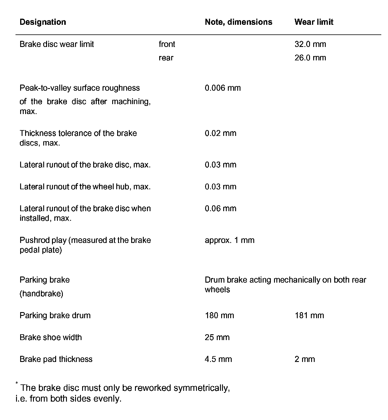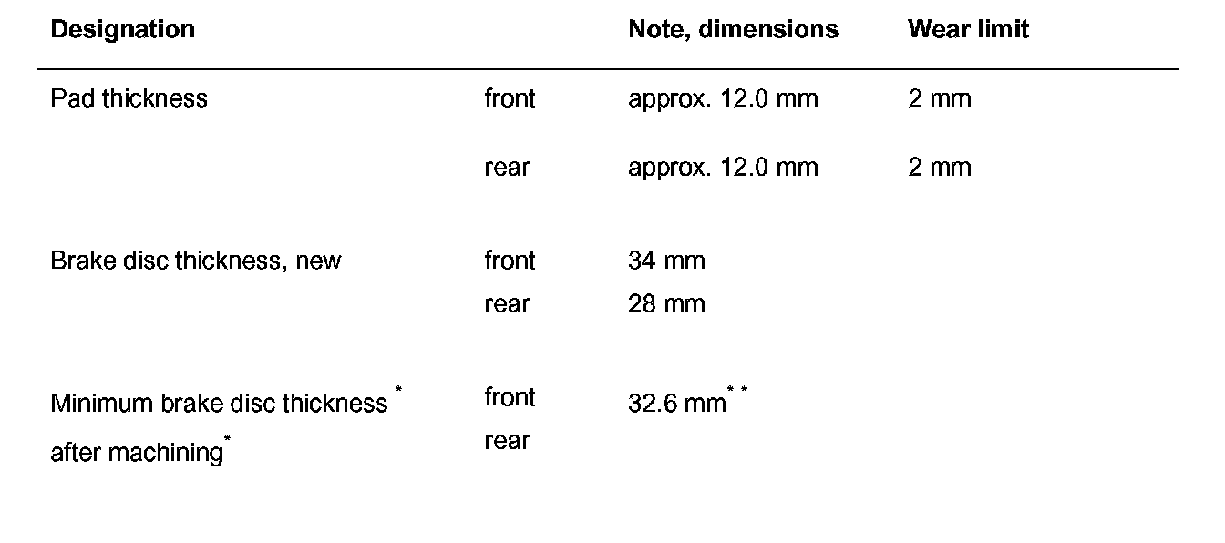 Wear Limit Technical Data - Turbo With Cast Iron Brake Discs