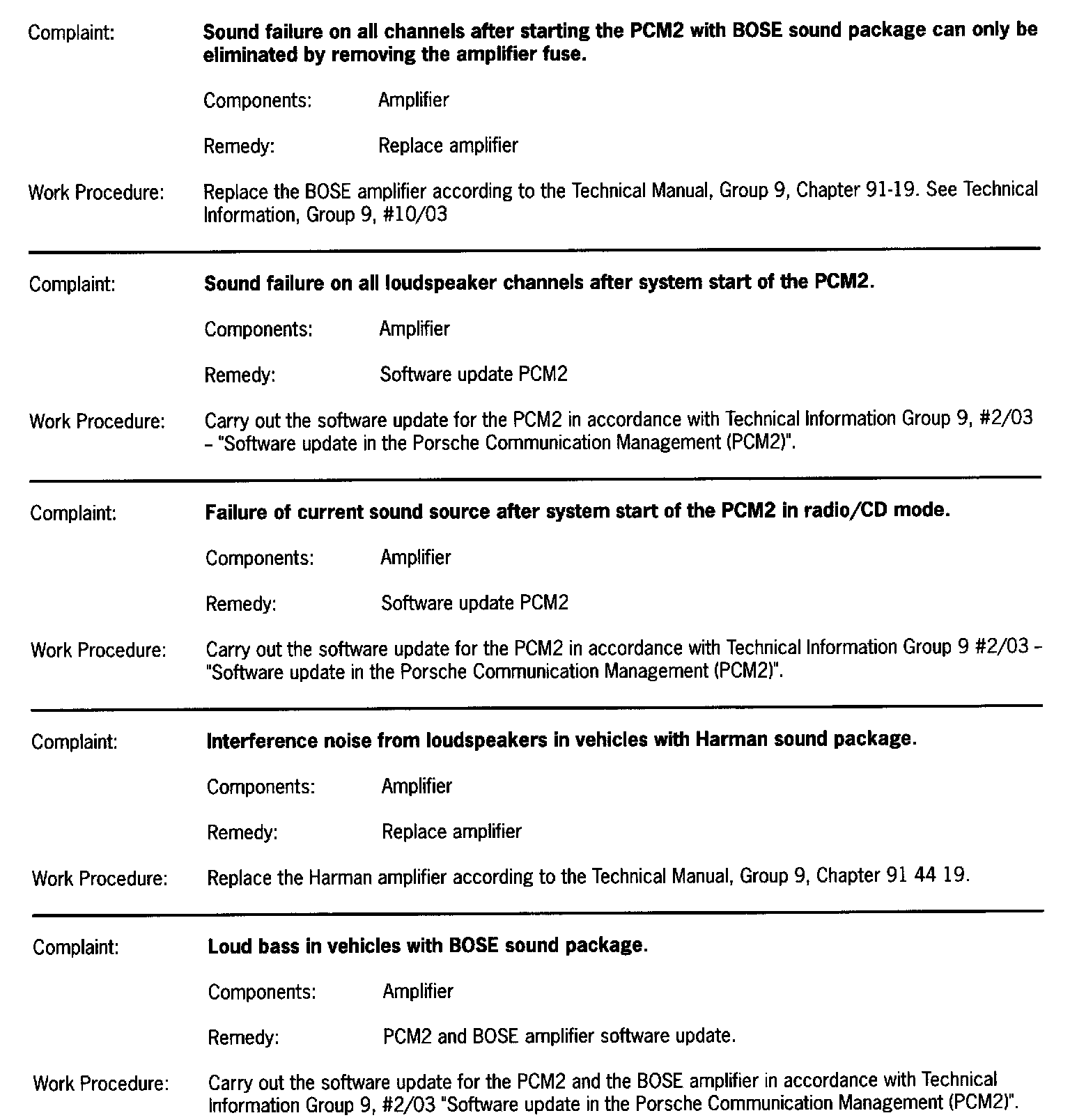 > Technical Information: # 14/03 PCM2 with BOSE Sound package: sporadic sound failure