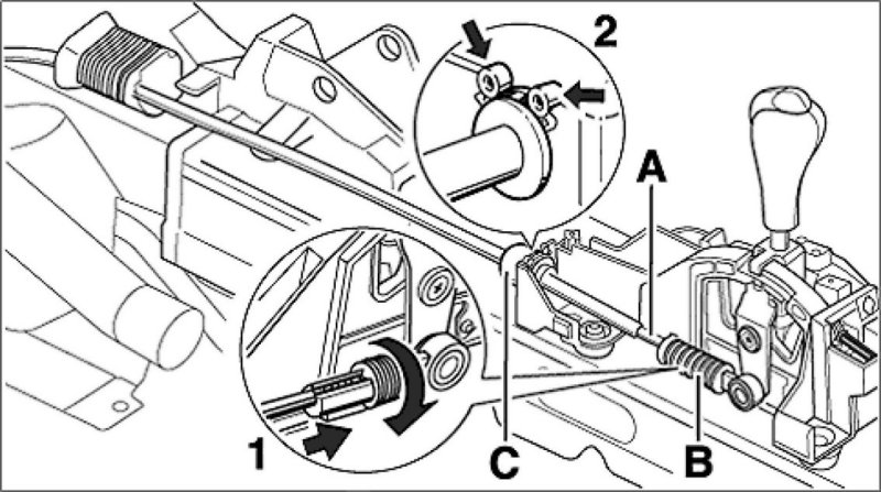 15. Engage the selector lever cable into the open adjuster and close the adjuster. The locking sleeve on the adjuster must move to the end position automatically.