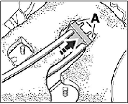 12. Bend up the tabs -A- in the vehicle interior at the body opening and press the rubber sleeve outward through the body opening.