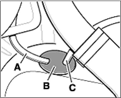3. Insert B+ wire -A- into the slot of the rubber sleeve -B- and press sleeve into the body opening.