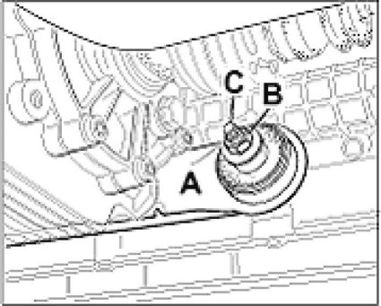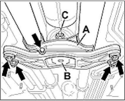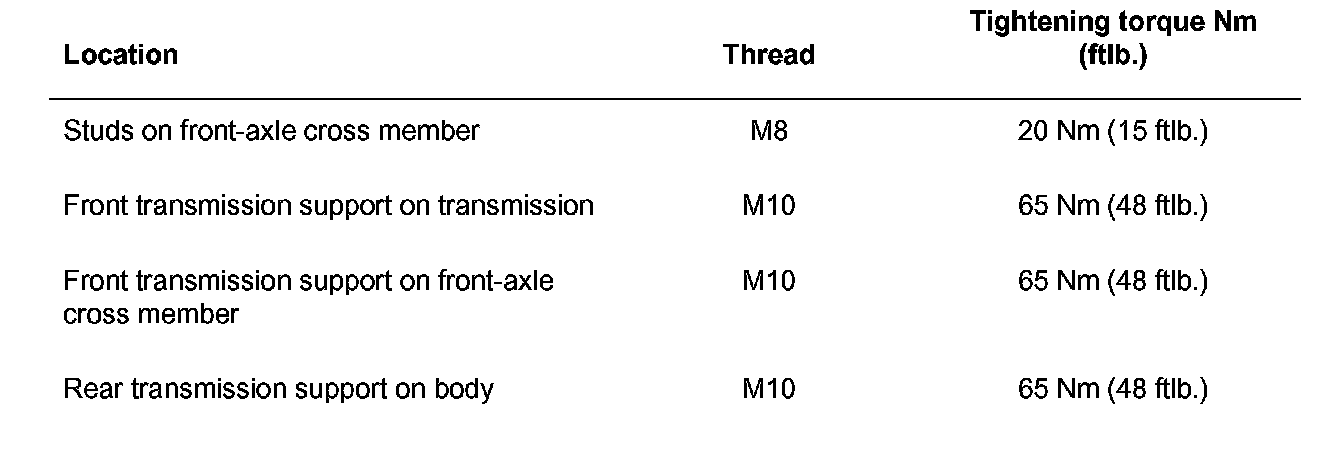 Note: If the hexagon-head bolt (M10 x 90) was undone on the rear transmission support/transmission mount, it is essential to tighten the front transmission support first, then the rear transmission support and the M10 x 90 screw on the rear transmission mount last!