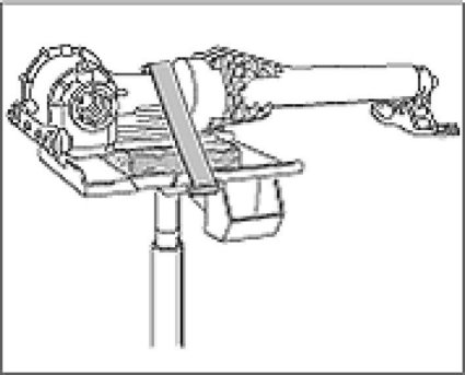 5. Place transmission jack under the transmission and secure with fixing strap.