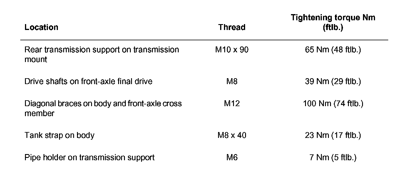 3. Fasten transmission mounts on the front-axle cross member and on the body.