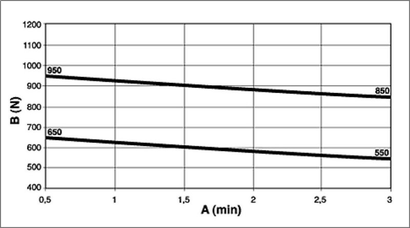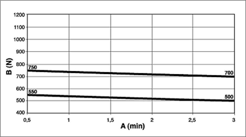 6. Measure traction 6 times in three minutes. Measure the first traction value after 30 seconds operating time, then carry out five more measurements every 30 seconds.
