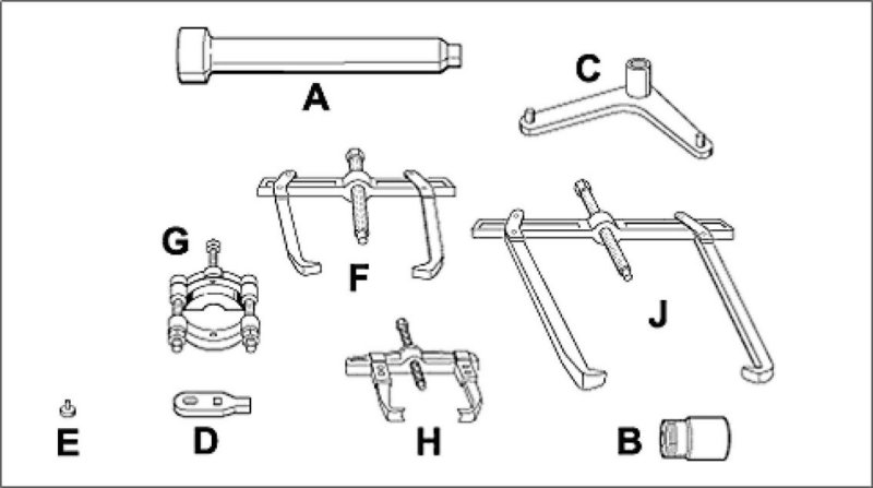 8. Push gear set back behind the bearing inner race (no. 8 in overview) and remove bearing inner race using the puller. If necessary, press the bearing inner race forwards again with the mounting lever.