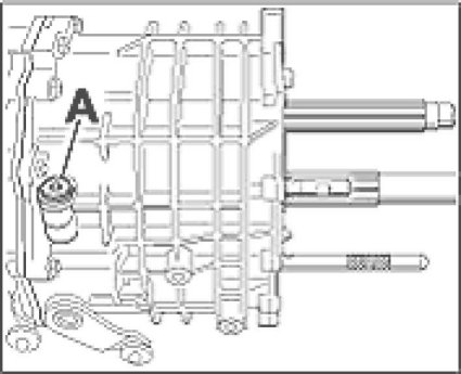 2. Pull out reverse gear shift rod (no. 25 in overview) and shift rods for 5th/6th gear (no. 27 in overview) towards the front. Pay attention to the intermediate lock (no. 24 in overview) and locking elements (no. 22 in overview) during this procedure.