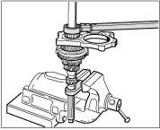1. Clamp complete shaft into the vice with gear set and special tool socket wrench insert 9282.