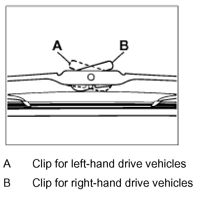 - The clip installation position must be observed when installing the wiper blades for left-hand drive and right-hand drive vehicles: