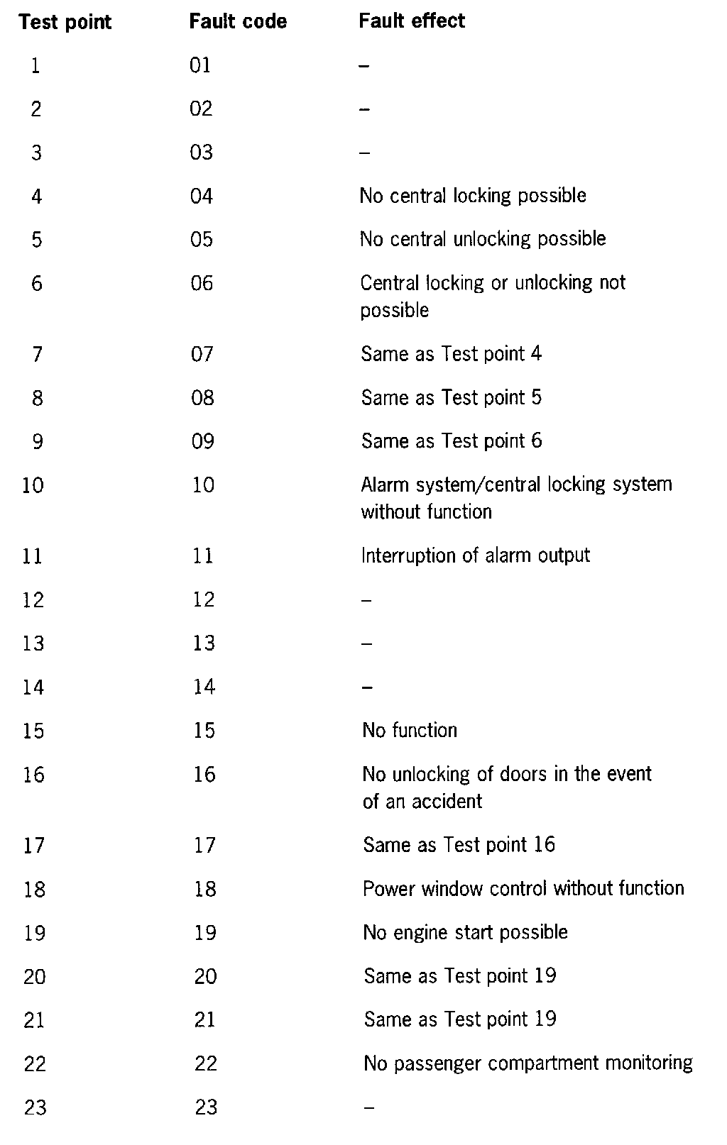 NOTE: After a fault occurs in the alarm system and is remedied, the fault memory must be cleared.