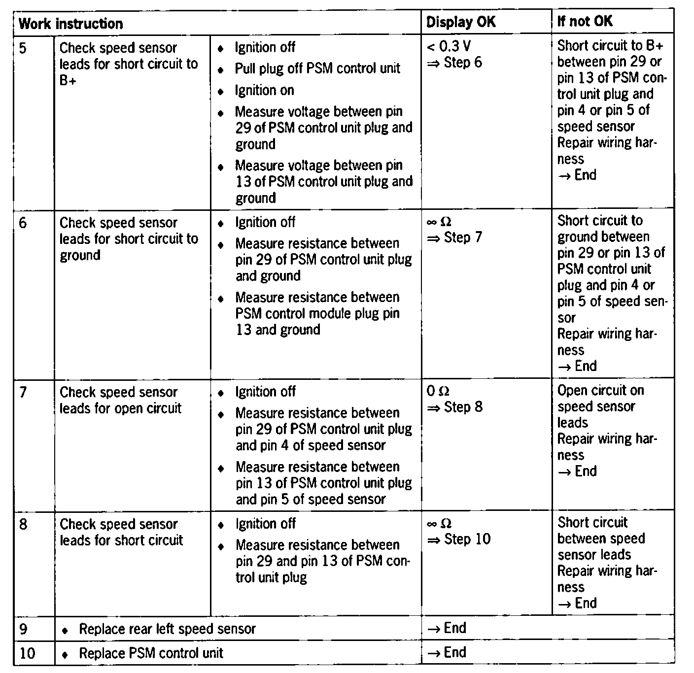 - Short circuit to B+/ground or open circuit between control unit and speed sensor