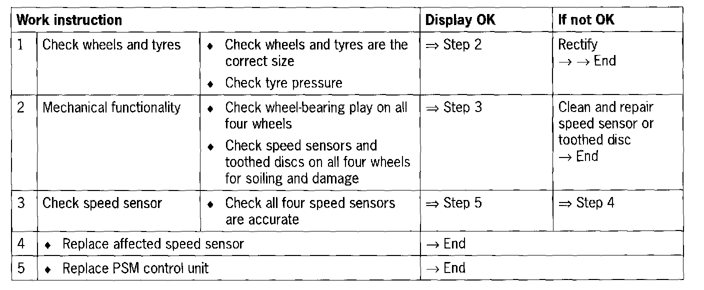 The fault is stored if the average speed of one wheel differs by at least 5 % from the speed of the other wheels for longer than 20 s or if one or more wheels are controlled for longer than 60 s.