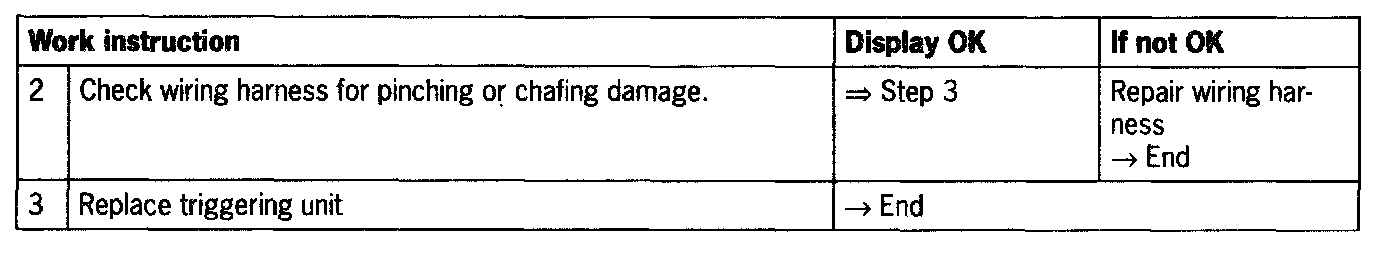 - Short circuit to B+/ground or open circuit in the wiring between the passenger's airbag unit and the airbag triggering unit
