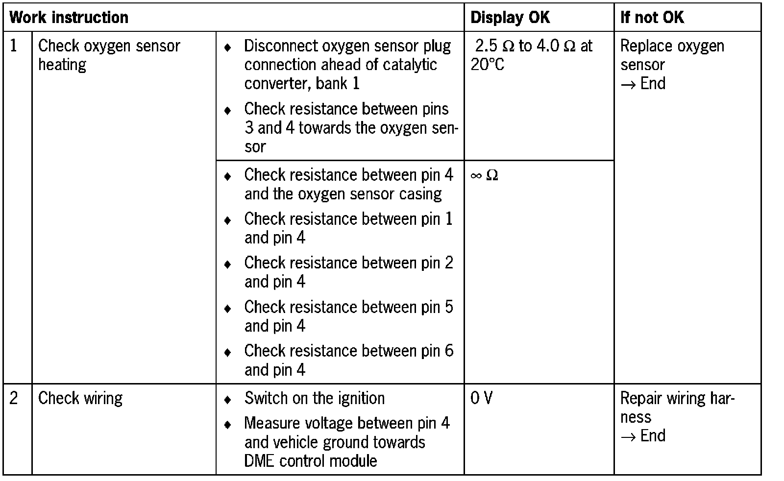 DME control module, connector II, pin 13 and oxygen sensor jack ahead of catalytic converter, bank 1, pin 2