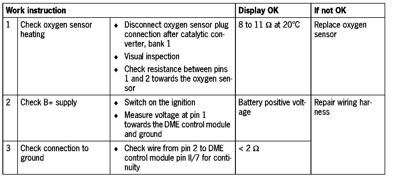 - Oxygen sensor faulty (heating)