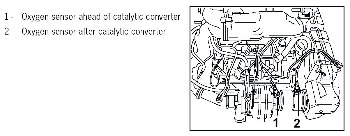 NOTE: Do not exchange oxygen sensors ahead of catalytic converter and after catalytic converter.