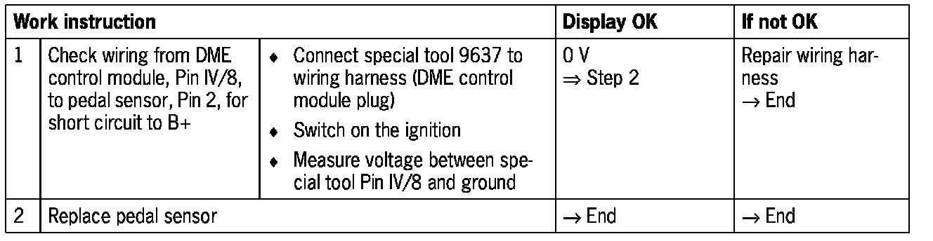 - The system operates in pedal sensor standby mode, i.e. the angle of the accelerator pedal is calculated from the residual position sensor signal.