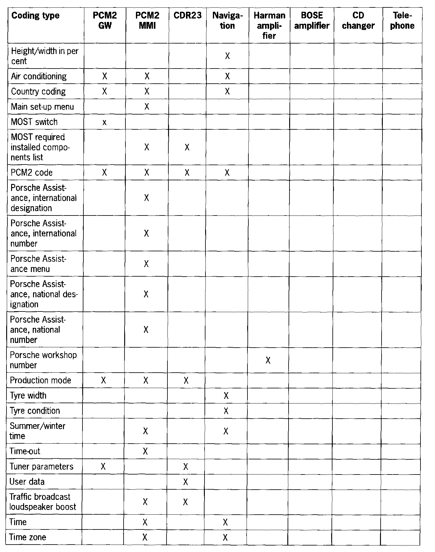 - Select "Porsche Assistance, national designation" in the Boxster PCM2 MMI coding and confirm with the >> key