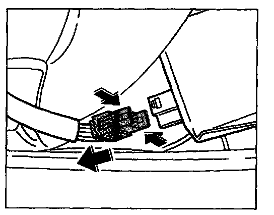 4. Unplug the electrical plug connection on the right side beneath the convertible top linkage. Press connectors -arrow- together and pull apart.