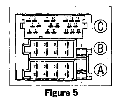 2.5.2 On a basic radio setup (M 441) insert the wires on plug B in the following order (see figure 5). Right rear speaker positive (+) in position 1 and ground (-) in position 2. Left rear speaker posi4ive (+) in position 7 and ground (-) in position 8. Install plug in position B on the back of the radio.