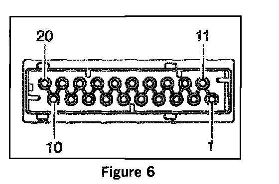 Plug in the amplifier adapter cable into the brown plug and insert the wire connectors to the amplifier plug housing in the following order (see figure 6):