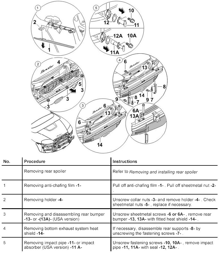 - Check heat shields for deformation, bonding (detachment of the aluminium layers), tears and missing or damaged sealing strips.