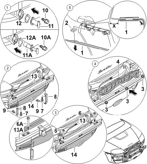- In order to reduce adjustment work to a minimum when assembling the rear spoiler, the rear bumper or holder must be aligned with the lower edge of the rear lid according to the dimensions shown above.