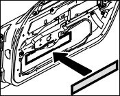 5.1. Position the door channel seal on the inside -arrow- in the bead of the door channel and press it on.