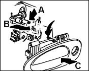 13.3. Actuate the handle -arrow C- to ensure that the handle and door lock function without play.