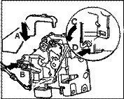 2.2. Unclip bowden cable -arrow B- from the door lock.