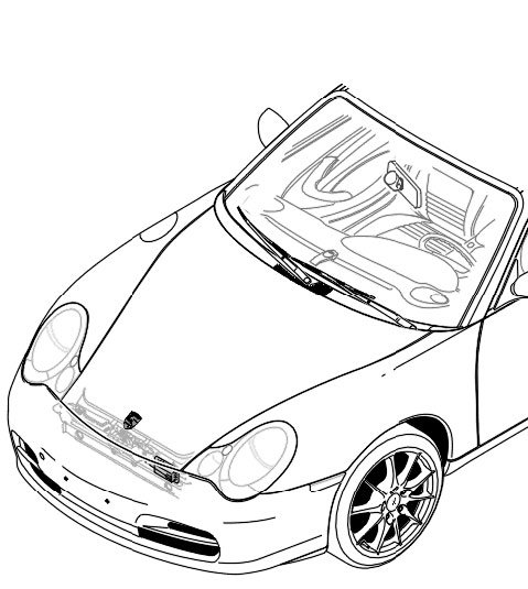 1. Engage the upper part of the lock = tool (Porsche spare part) in the lower part of the lock -direction of arrow-.