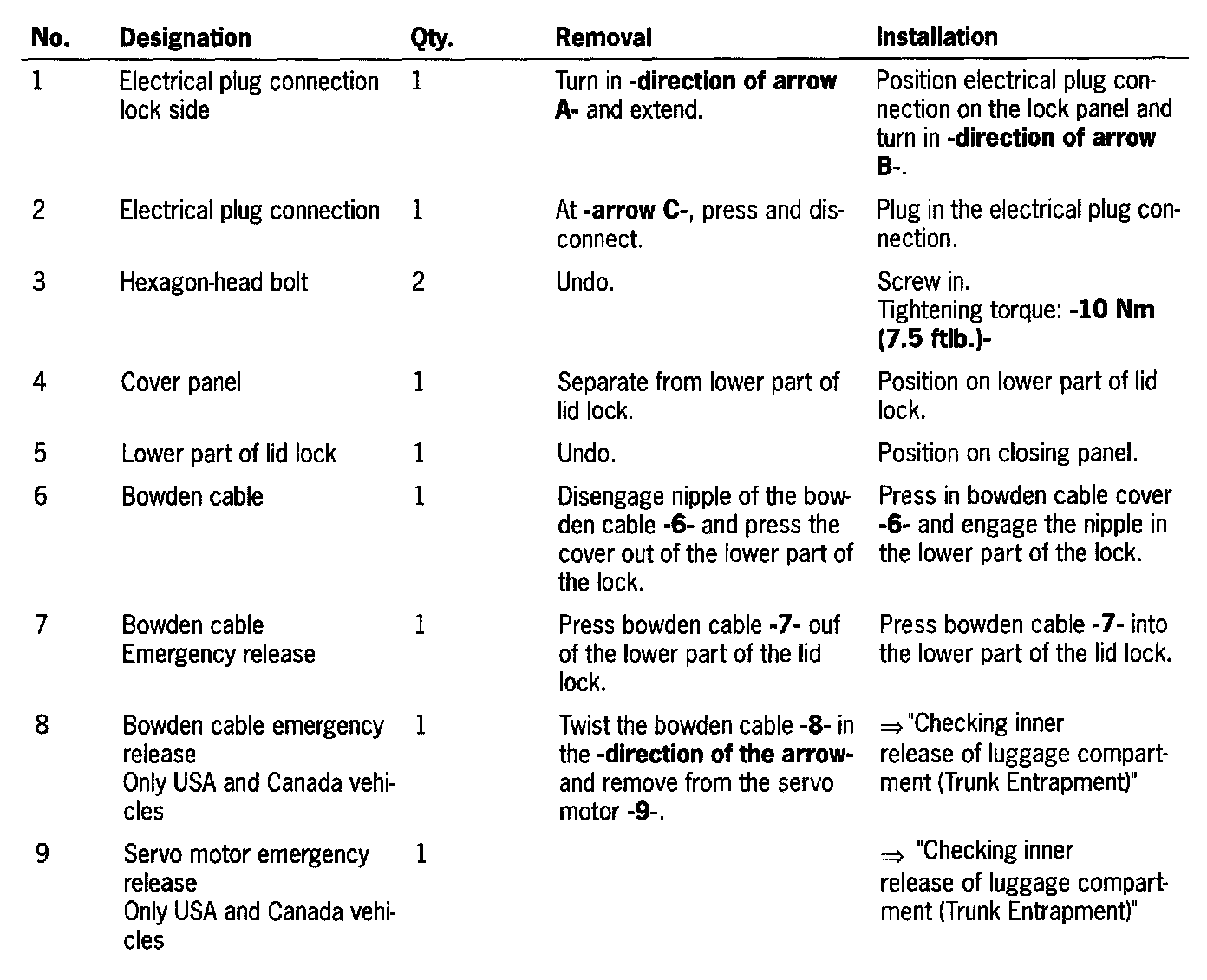 Removing And Installing Bowden Cable For Lock Actuation