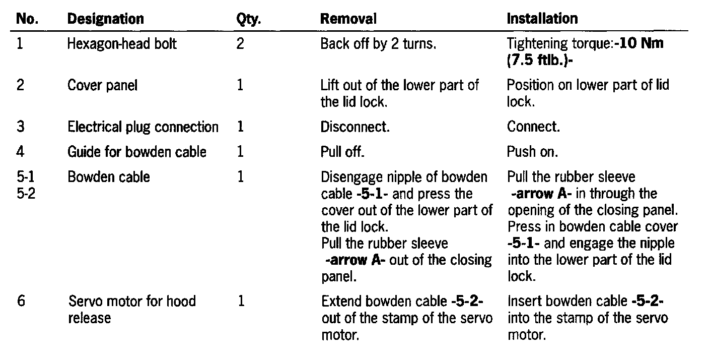 Removing And Installing Front Lower Part Of Lid Lock