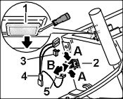 1.2. On the retaining bracket -2-, press the locking tabs -A- apart. Guide out the microswitch -5-.