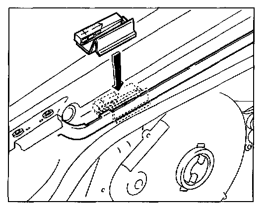 2. Push stop for convertible top compartment lid onto body raised edge of water channel.