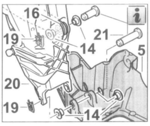 2. Press the retaining clips -19- into the pins -18, 21-.
