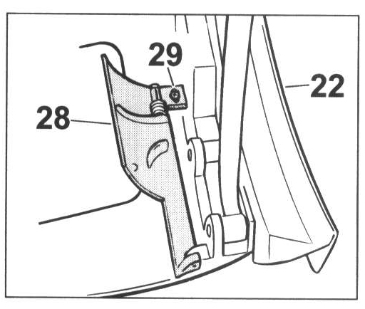 - Insert the cover -28- on the roof frame -22- and tighten the fastening screws -29-.