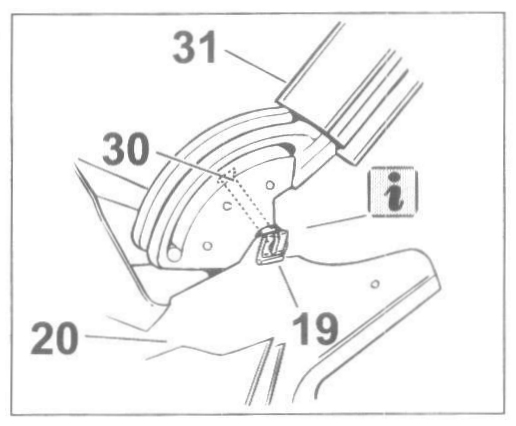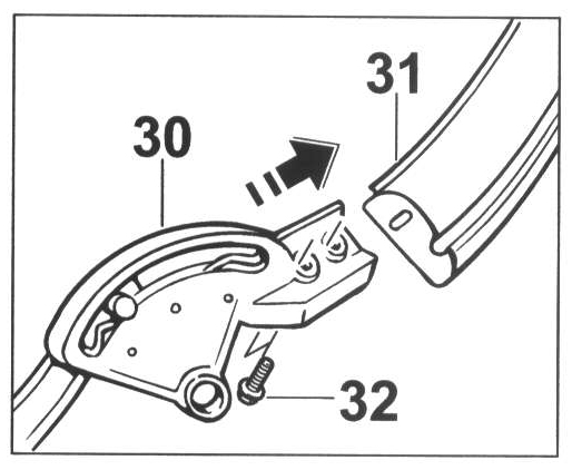 - Insert the pre-assembled connection-piece with steering lever -30- into the tension bow -31- and fasten with the fastening screws -32-.