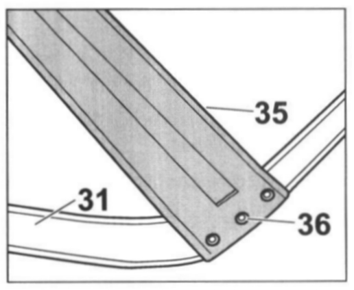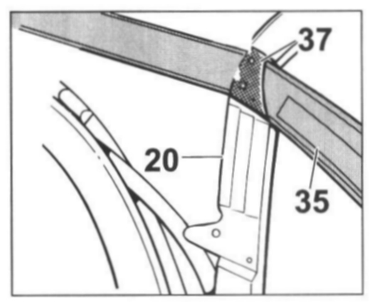 - Position tension strap -35- on tension bow -31- on the holes provided, rivet on the tension strap with the pop rivets -36- (parts scope component of convertible-top covering)