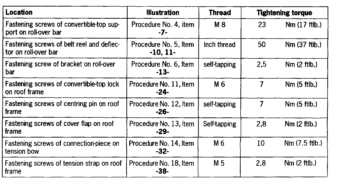 - In vehicles with a roof liner produced before 12.04.2000, a modified roof liner with a new cut must be installed when the convertible-top covering with a small rear window is replaced