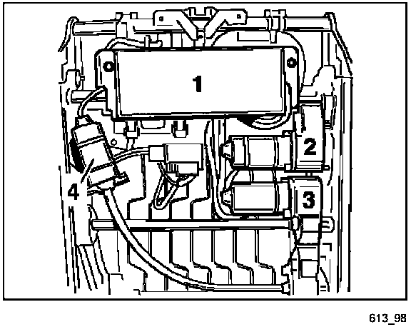 Figure 613_98 shows how the following system components are arranged under the front seat.