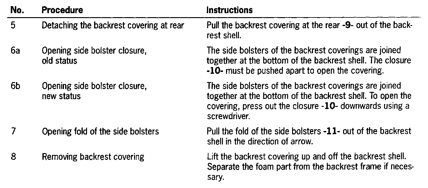 Removing Cover For the Front Backrest Frame