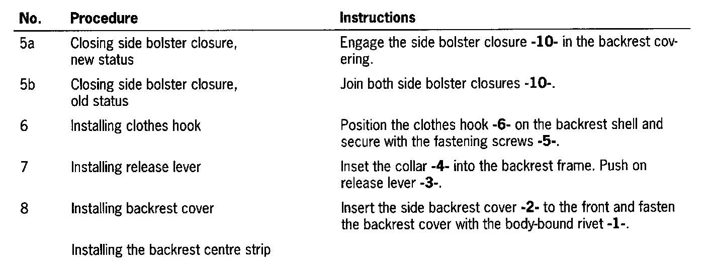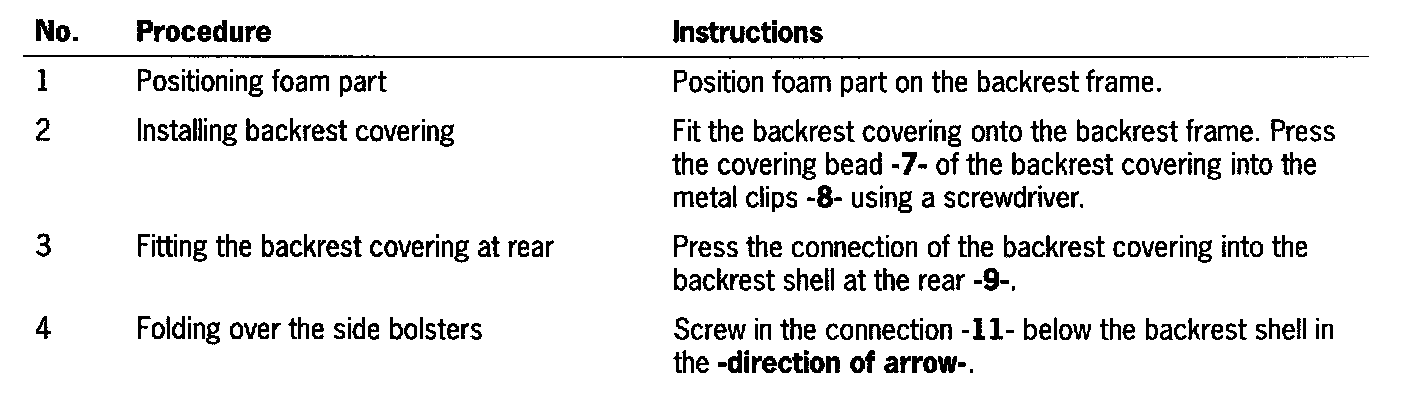 Installing Covering For the Front Backrest Frame