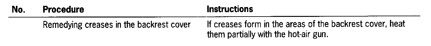 - If creases form, only short partial warming with the hot-air gun is permissible. The hot-air temperature of approx. 50 degrees Celsius (122 Fahrenheit) must always be observed.