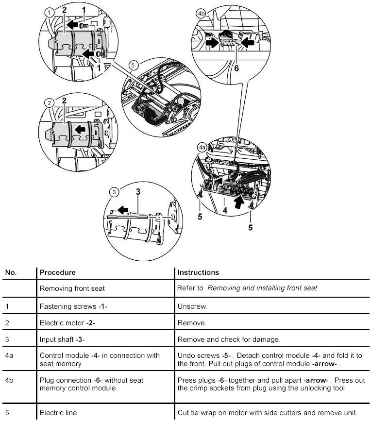 Removing and Installing Electric Motor For the Front Seat Height Adjustment