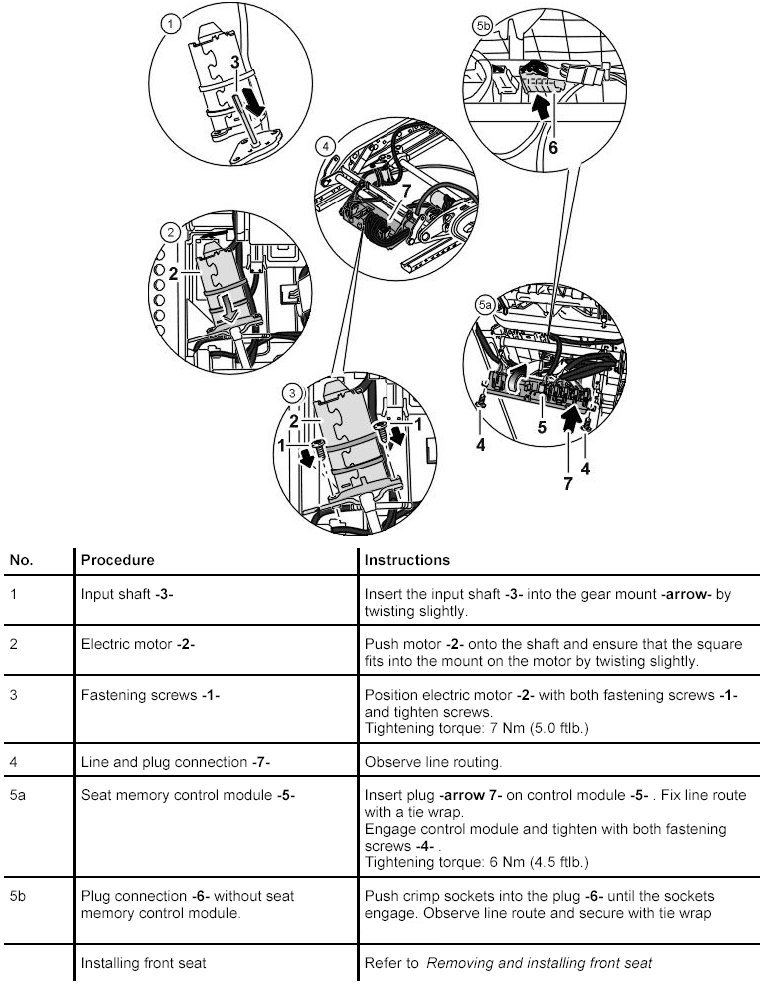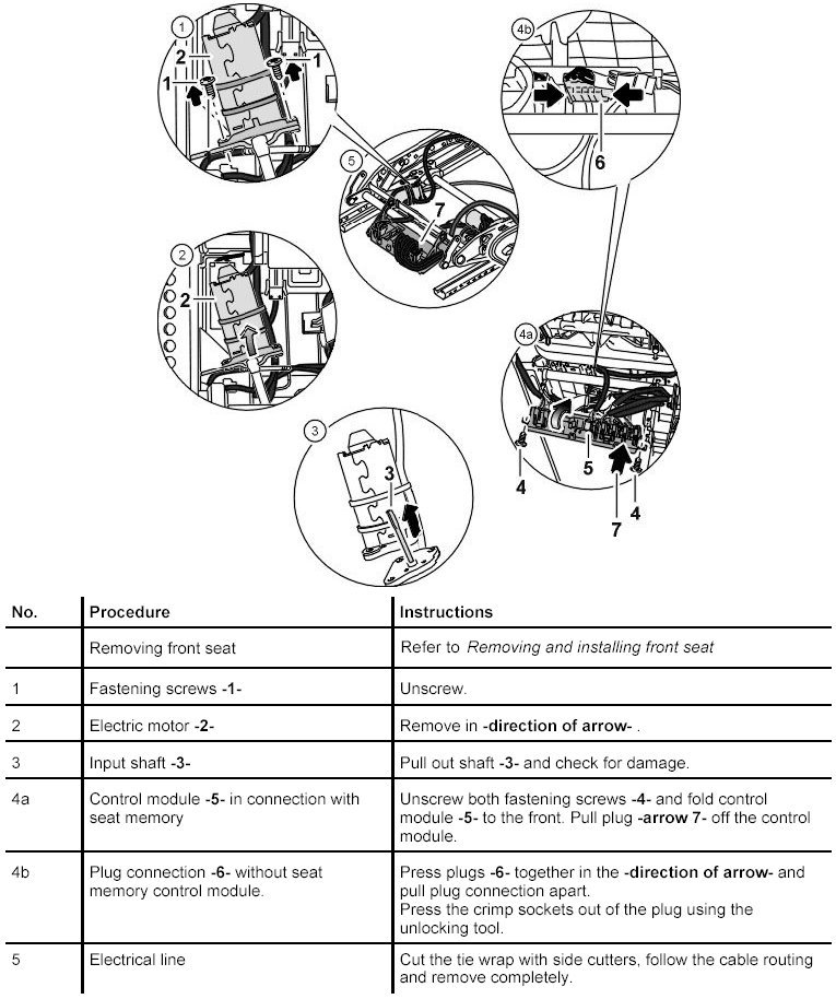 Removing and Installing Electric Motor For the Rear Seat Height Adjustment