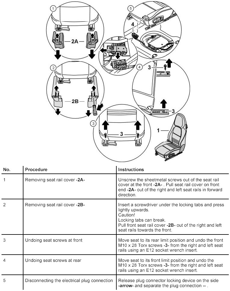 Removing and installing front seat