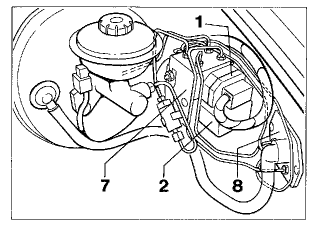 1. A system test (function test) must be performed if work is performed on the hydraulic unit No.7, the speed sensors and the wiring harness or if the hydraulic unit is exchanged. This is the case after accident repairs, for example. This prevents electrical and hydraulic lines from being swapped and ensures flawless operation of the system.