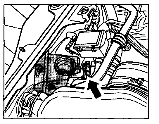 5. Unscrew the fastening screw at the back -arrow- from the engine compartment side. This is positioned between the intake manifolds of the fourth and fifth cylinders.